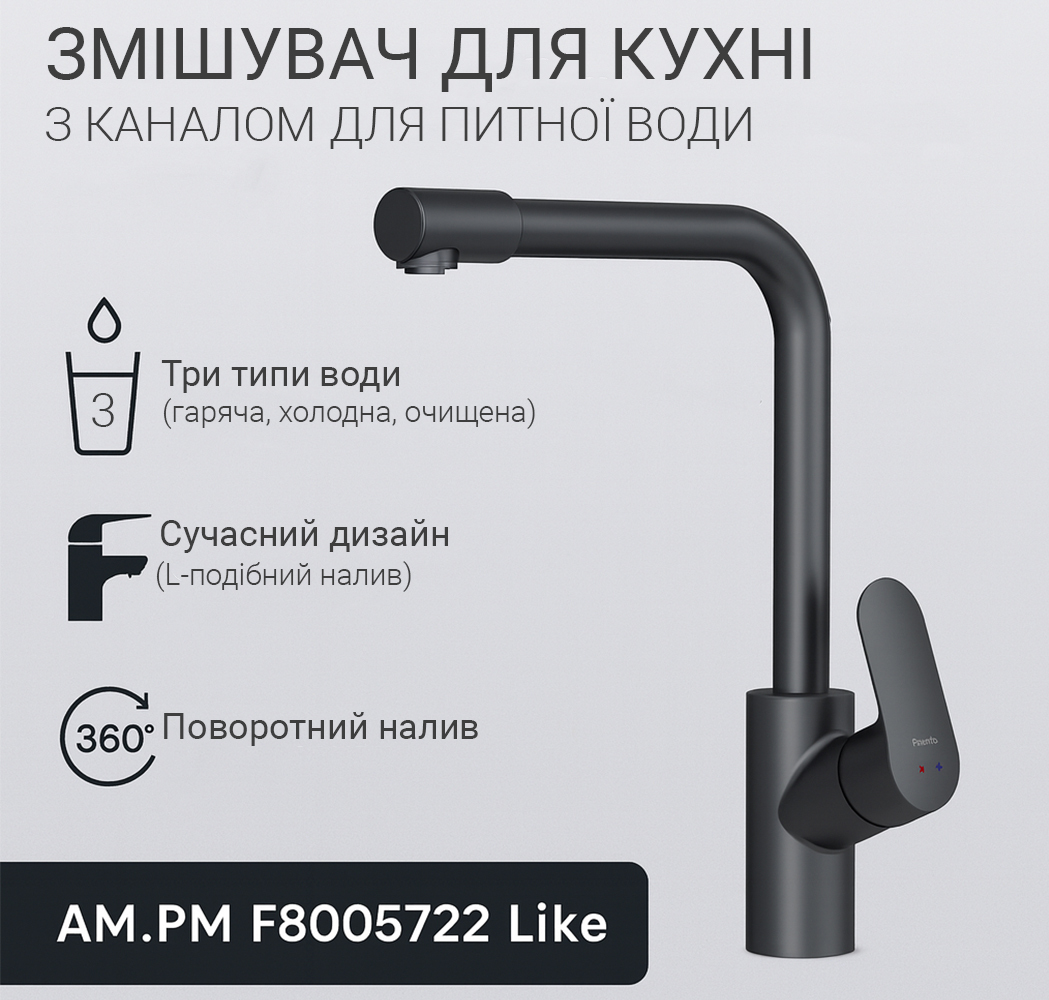 AM.PM F8005722 Like — це не просто кухонний змішувач, а повноцінна сучасна система водопостачання для вашої кухні.